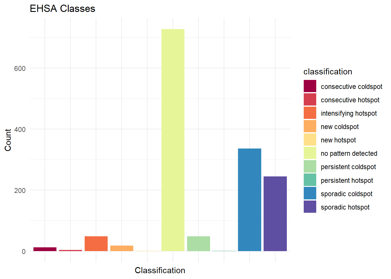 labs(title = "EHSA Classes",x = "Classification", y = "Count") +